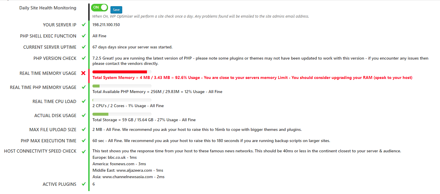 As a smart feature our plugin also performs daily site/server & checks and will automatically report any system or server issues found to your site's admin email